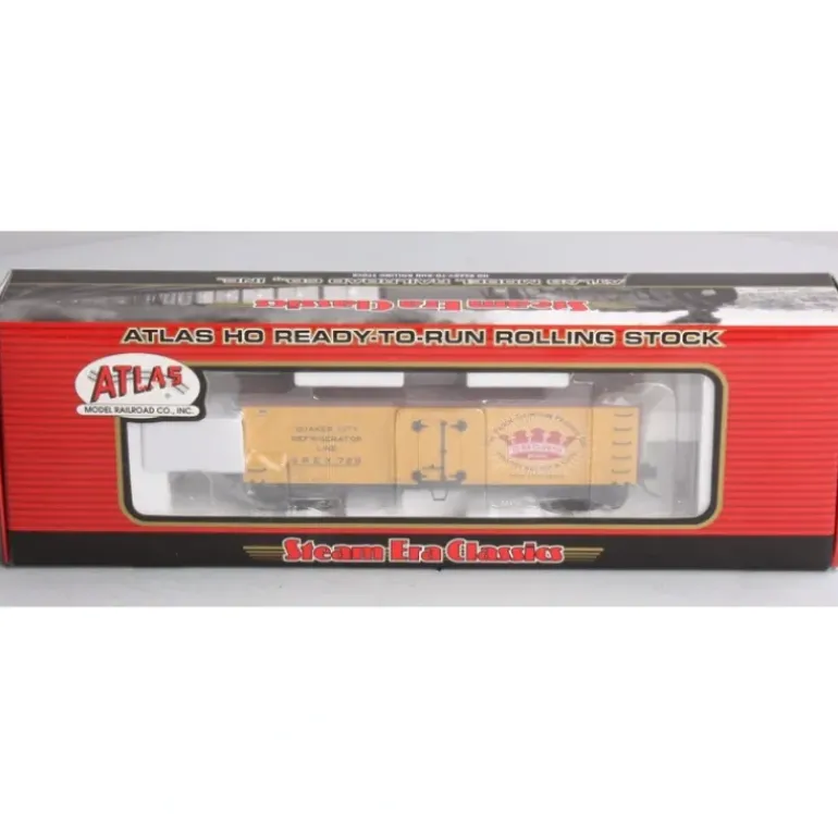 Here is an Atlas 6125-2 HO Quaker City 36′ Wood Reefer Car. Atlas Model Railroad Company is proud to present the Steam Era Classics line now in HO Scale. This series of models salutes rolling stock from the Golden Age of Steam. Each Atlas HO Freight Car features free-rolling trucks with blackened metal wheels, AccuMate boudy mounted couplers.