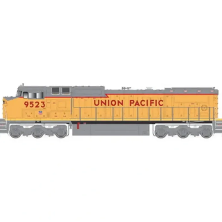 Here is an Atlas 7694 HO Union Pacific C40-8W Diesel Locomotive #9370. First built for Union Pacific in the late 1980’s by General Electric, the DASH 8-40C diesel locomotives were identified by an enlarged exhaust stack and the mounting of the dynamic brake grids in a square-like unit behind the cab, which housed an enlarged equipment blower fan. These six-axle, 4,000 hp engines are still in service today in North America. Features include plastic construction, plastic trucks, knuckle couplers, metal wheels & axles and a motor.