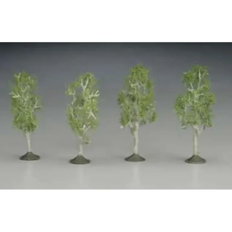 This is a Bachmann 32110 N Aspen Trees 2 1/2-2 3/4 (4). Bring your urban or countryside railroad to life with realistic SceneScapes trees by Bachmann. Create your own orchard or blanket a hillside in dense forest with deciduous and coniferous trees offered in a variety of sizes. Suitable for all scales. For use with all train layouts, realistic colors, removeable bases for more placement options, size assortment for added realism. Suitable for all scales, but most commonly used in HO; (4 pieces per pack).