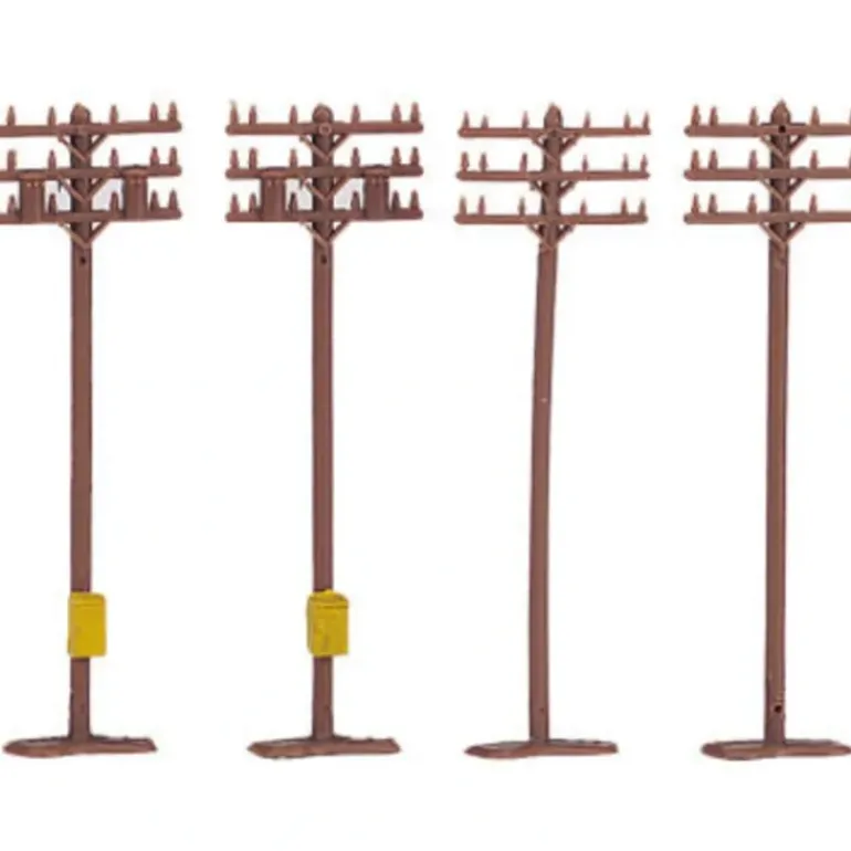 Designed for use with N scale railroad layouts and dioramas, telephone poles add a highly authentic touch to any N scale layout. Brown poles constructed of plastic. Base is already attached to the pole. Resemble the telephone poles of the early 19th century (some of the poles have yellow telephone boxes). Each measures 2-1/4 inches tall.
