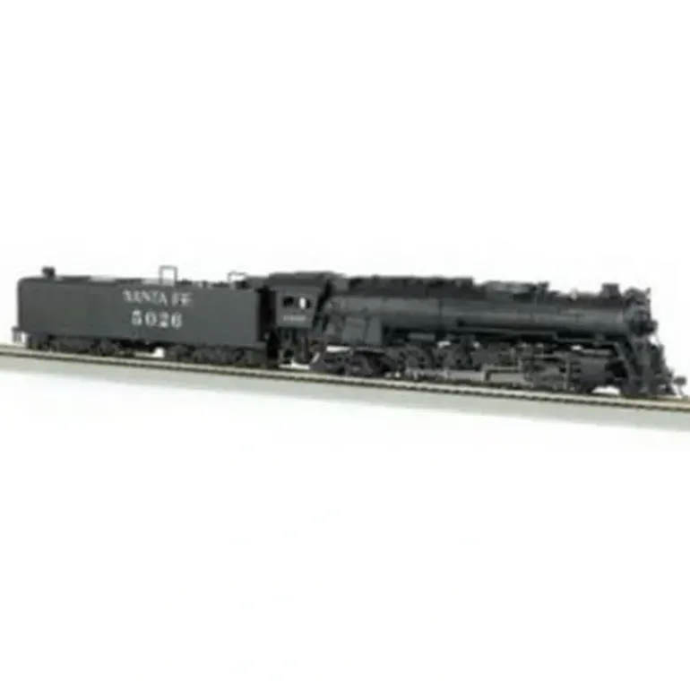 This is Bachmann 51204 HO Santa Fe 2-10-4 Steam Locomotive w/DCC/Souind #5026. Features include: Fully assembled, weighted and ready to run, Main track programming, 28-step speed control, For use with all NMRA/NEM compliant DCC systems, Operating headlight, Can motor, Die cast chassis, E-Z Mate Mark II couplers with metal coil springs, Compatible with conventional DC powered layouts.
