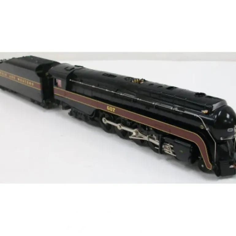 This is a Broadway Limited 1106 HO Norfolk & Western Stealth Steam Class J 4-8-4 #607. This locomotive and tender feature detailed plastic construction, plastic trucks, operating headlight on the locomotive, powerful motor in the locomotive, (1) operating knuckle coupler on the loco, (1) Kadee Knuckle Coupler on the tender, and metal wheels and axles. This item is DCC ready and currently does not feature sound.