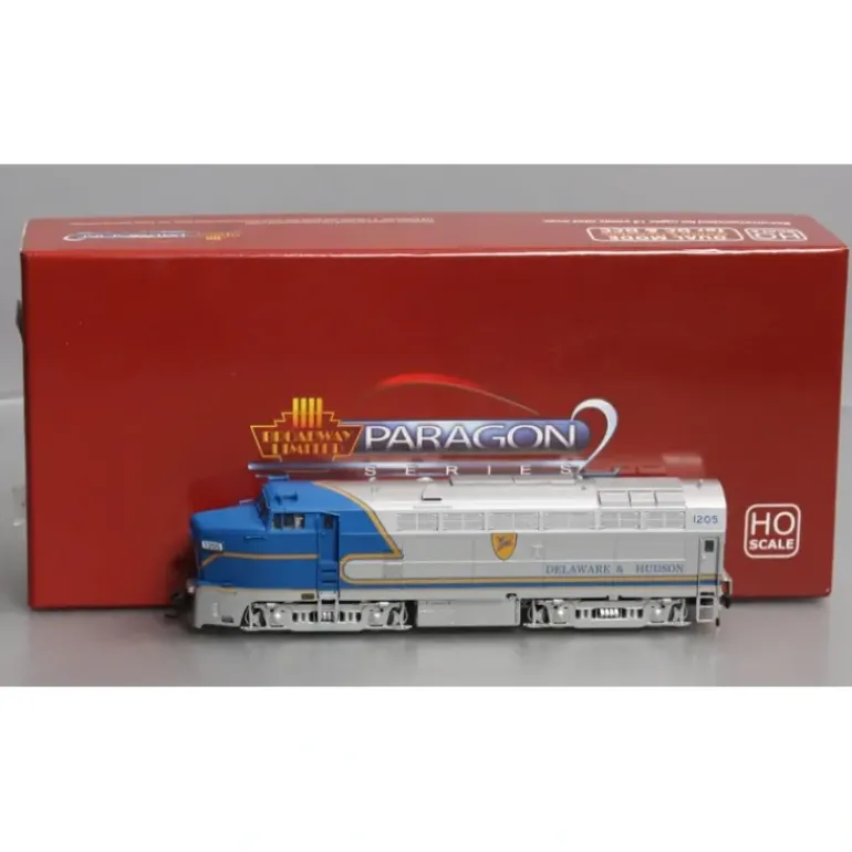 This is a Broadway Limited 4069 HO D&H Baldwin RF-16A Diesel Locomotive #1205 (Paragon2 Sound/DC/DCC Equipped).Features, ABS plastic body with heavy die cast chassis for maximum tractive effort, 5,pole can motor with skew wound armature, A,unit length (coupler to coupler): 8, B,unit length (coupler to coupler): 7.7, Locomotive Weight: Unavailable at this time, Many separately applied details such as handrails, ladders, horn, and brass bell, Operating knuckle couplers, Will Operate on Code 70, 83, and 100 rail, Recommended Minimum Radius: 18 Industry,Leading Features:, All New Paragon2 Sound and control system for DC and DCC, Integral DC/DCC dual mode decoder for ease of operation, Industry best slow,speed operation in DC and DCC, Functions are accessible in DC using the DCMaster, Prototypical light operation with headlight and cab light, Authentic Baldwin Shark Sounds! Controllable in DC and DCC, All,wheel drive and All,wheel electrical pick,up, Factory instAlled engineer and fireman figures, Near brass,caliber detail at a plastic price.