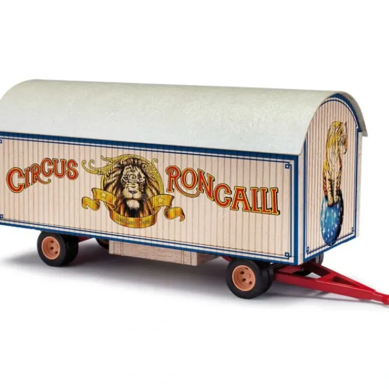 This is a Busch 59966 HO Scale Assembled Circus Roncalli Wooden Trailer with Round Roof.
