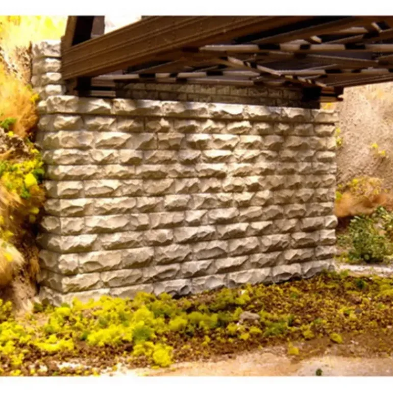 This is a Chooch Enterprises 8450 HO Double-Track Cut Stone Bridge Abutment. Fits Central Valley Double-Track Truss Bridge