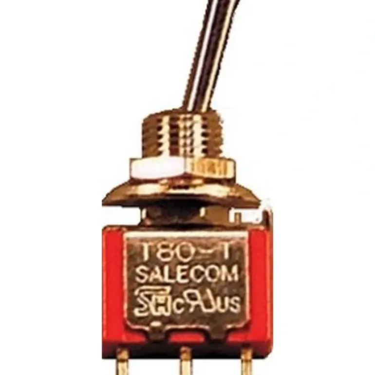 This is a Circuitron 9110-06 HO Switch SPDT on-on 6/ Sub-miniature toggle switches for panel mounting. 6 amp rating. Solder lug terminals. Chrome handle. 1/4 panel hole.
