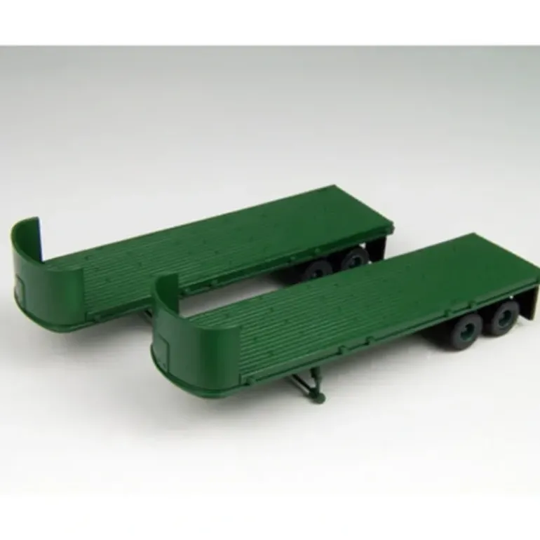 This is Classic Metal Works 31127 HO 32′ Freuhauf Flatbed Trailer 2-Pack – Green, No Lettering.