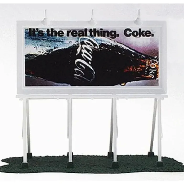 This is a Coca-Cola 8256 HO Scale It’s the Real Thing Billboard. It is brightly colored and attractively decorated.