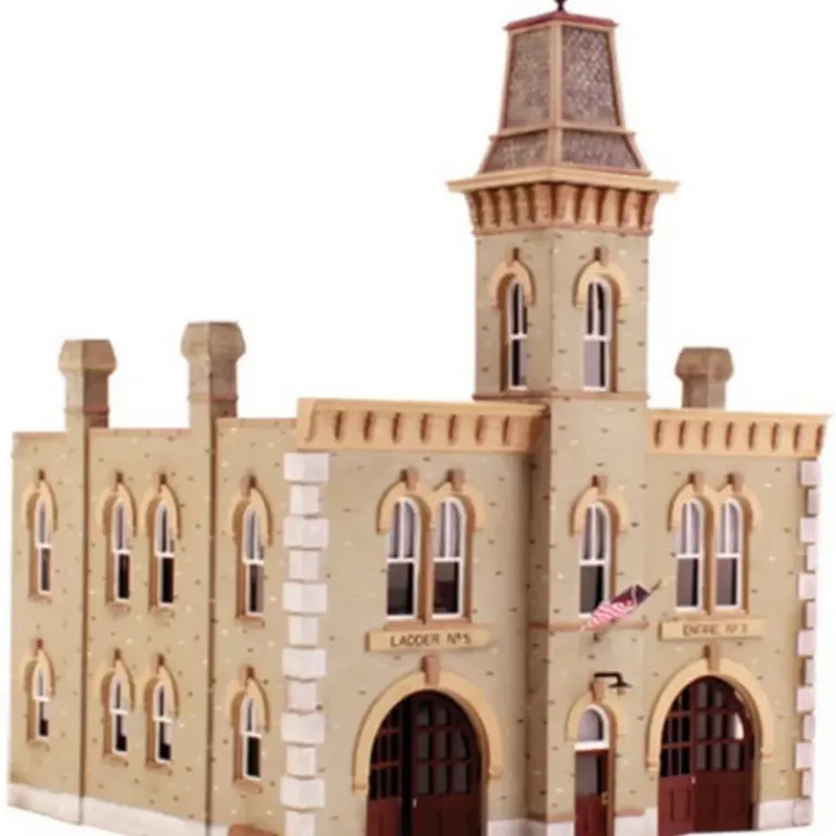 This is a DPM 12400 HO Fire Station No. 3 Kit. This kit features easy to assemble plastic pieces and detailed instructions. Each kit includes a building with period-authentic architectural detail, roof, clear window materials, and illustrated instructions.