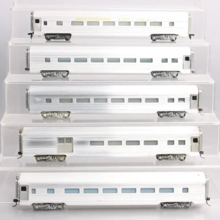 Here are 5 HO Passenger Cars [5]. Features include aluminum construction, die-cast trucks, knuckle couplers, and metal or plastic wheels.