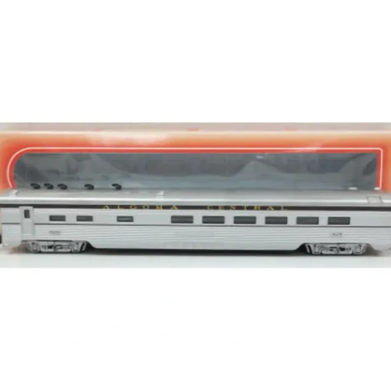 This is an HO scale passenger car. It features exceptional detail, precision painting and printing, and separately applied detail parts. Features also include plastic construction, plastic trucks, plastic couplers, and plastic wheels. It measures approximately 11 1/2 inches in length.