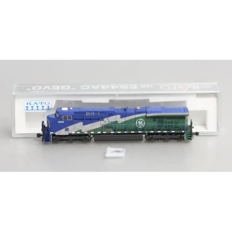 Features include a Powerful five-pole Kato motor with dual brass flywheels, Directional Headlight and illuminated, preprinted numberboards, Illuminated ditch lights, Kato magnetic knuckle coupler, DCC Friendly mechanism ready for drop-in decoder installation.