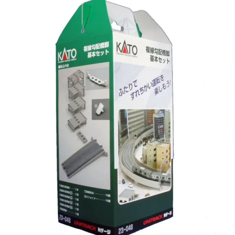 This is a Kato 23-048 N Scale Double Track Concrete Ties Incline Pier Set.