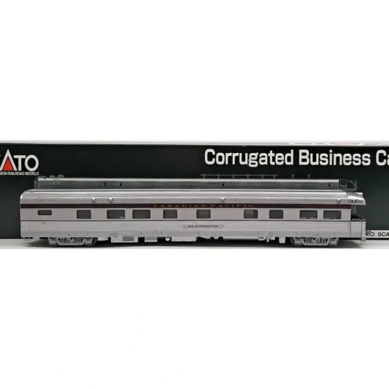 Here is a Kato 35-6002 HO Canadian Pacific “Algonquin” Business Car. Also known as Private Cars, Business Cars have existed since the early days of railroading. They are generally self-contained with office, meeting room, track inspection, entertainment, dining and sleeping facilities on board for railway officials and their invited guests. Assigned to key railway personnel for the purpose of inspecting track and traveling on company business, these cars were often handled on the rear of a convenient regularly scheduled passenger run. Today, it is not uncommon to see them at the back of an Amtrak or freight train. This car features plastic trucks, operating knuckle couplers, metal wheels, plastic axles, and the car interior can be lit with an optional 7-502 interior lighting kit with LED.