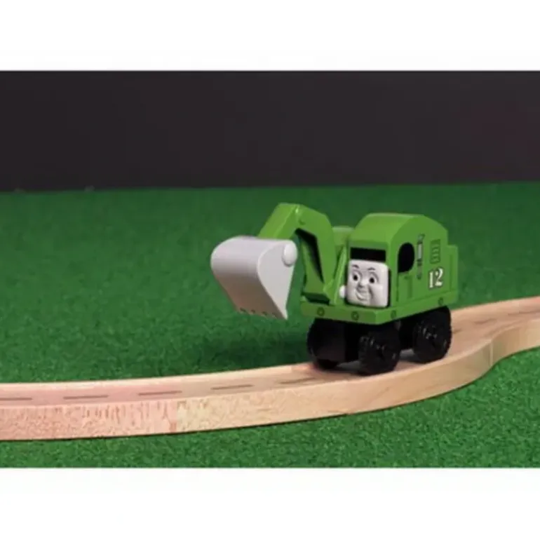 Alfie is an excavator who makes even the toughest job in the quarry look easy. He is friendly, helpful and loves to do all the dirty work. His favorite expression is more dirt means more fun. Lifting arm carries all magnetic cargo. As featured in New Friends for Thomas video. Thomas Wooden Railway vehicles, track and destinations are not compatible with Take Along Thomas items.