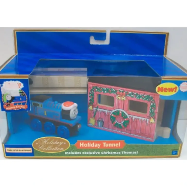 Thomas is rollin’ into town for the holidays. This wooden tunnel and engine complete your Thomas and Friends Around-the-Tree Train Layout (other pieces sold separately) for the holidays. Set includes exclusive Thomas with Santa hat, 4″ straight track and Holiday Tunnel. Measures 9.5″ x 4.5″ x 4.5″.
