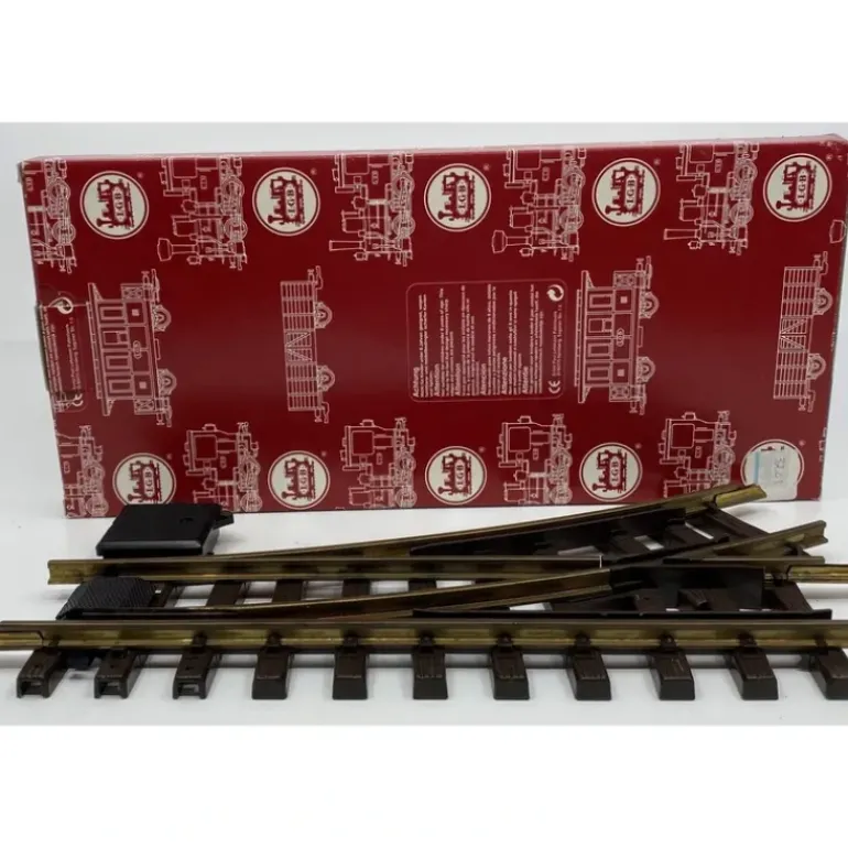 Here is an LGB 12100 G Brass 30 Left Hand Manual Switch. This switch is weather-resistant, and makes building a outdoor layout much easier. It measures approximately 13 1/2 inches in length.