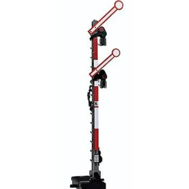 This signal has two moveable arms and color changing lanterns. It measures 350mm tall.