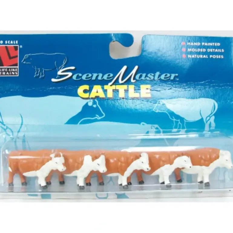 Here is a Pack of 5 O Scale Life-Like 1651 Cattle. Features include hand painted, molded details, and natural poses.