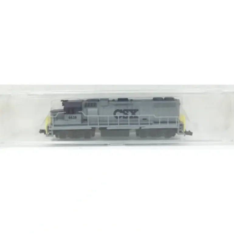 This is an N Scale Life Like 7842 CSX GP-38-2 Diesel Locomotive #6638. Features include plastic construction, motor, plastic trucks, decorative horns, rapido type couplers, metal wheels and axles.