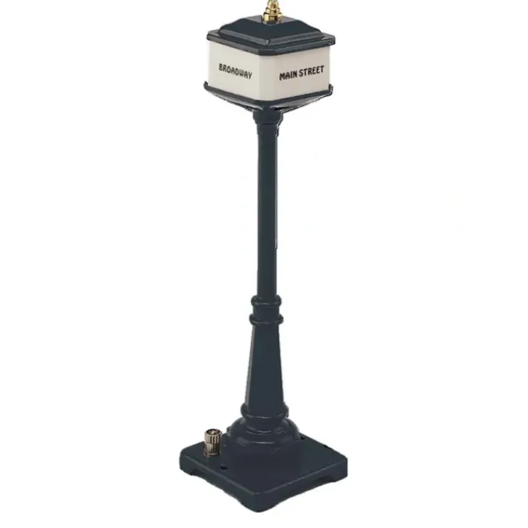 This is a Lionel 11-90016 Black No. 57 Corner Lamp Set. This is made by MTH and is part of the new Lionel Corporation Tinplate Line. Features include Die-Cast Construction, Stamped Metal Construction, Fully Painted, Fully Assembled, and Unit Measures: 7 1/2 Tall.