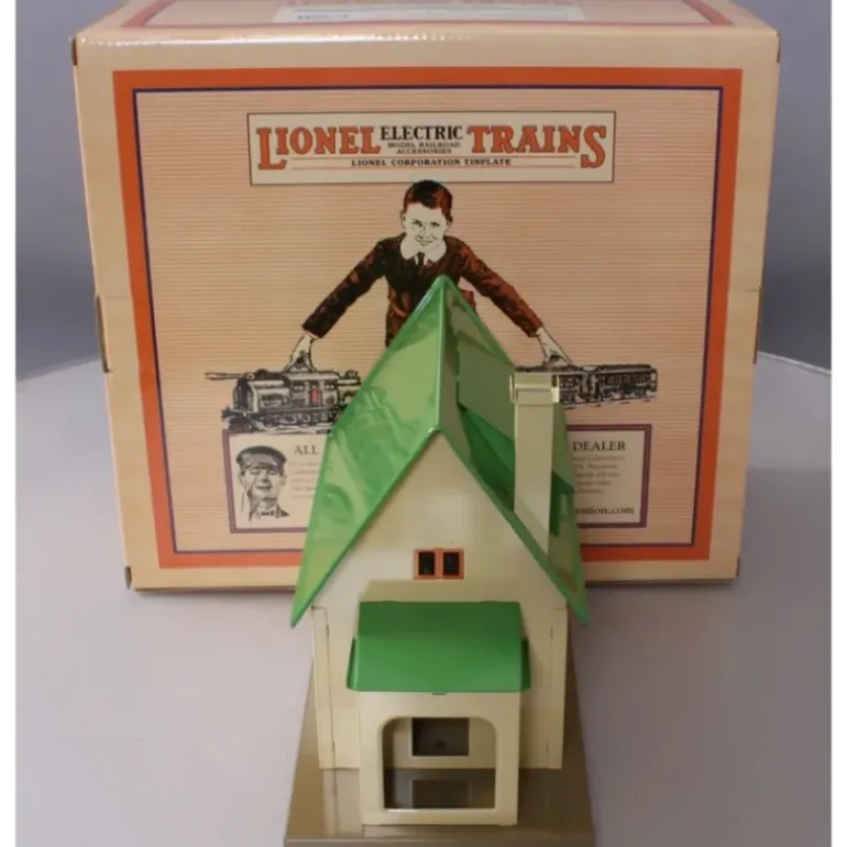 This is a Lionel by MTH 11-90023 #1184 Bungalow in Red and Cream. It features stamped metal construction, comes fully assembled and fully painted, and it measures 8 inches by 4 5/8 inches by 6 3/8 inches.