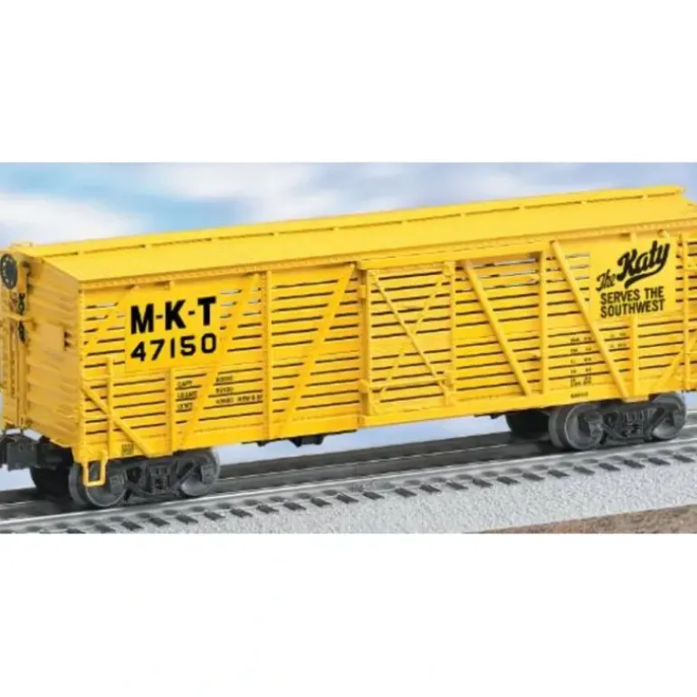 Here is a Lionel 6-17713 O Gauge Missouri-Kansas-Texas ACF 40-Ton Stock Car #47150. This stock car features four hand-painted cattle figures, opening doors, die-cast metal sprung trucks, die-cast metal operating knuckle couplers, metal wheels and axles. It measures 11 1/2 inches long.
