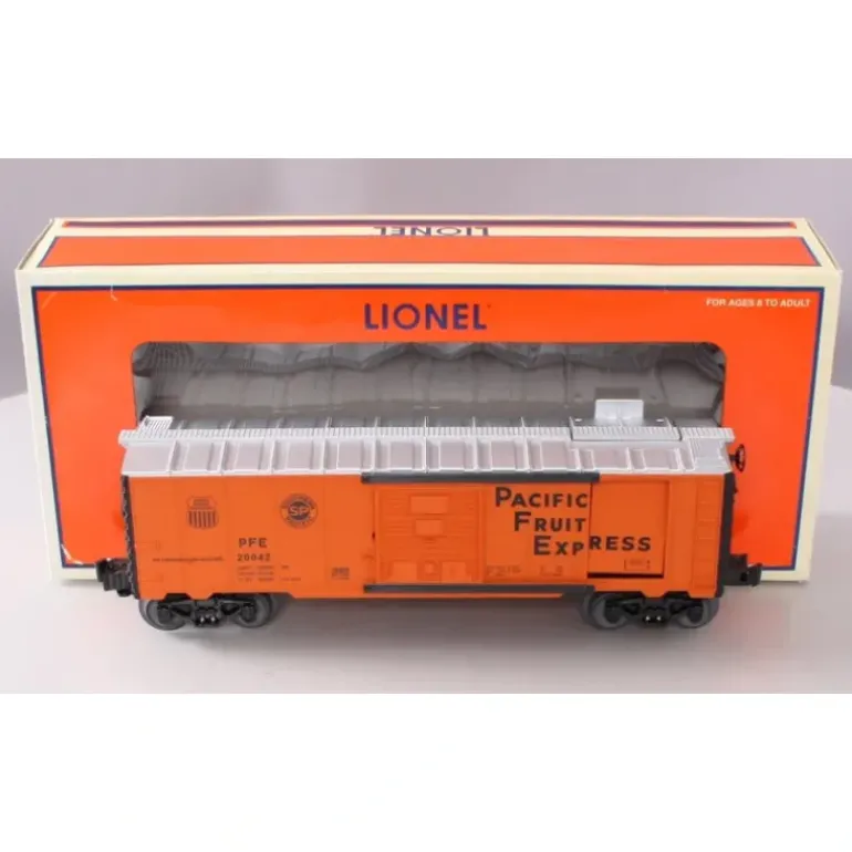 Here is a Lionel 26834 Pacific Fruit Express Ice Car #20042. Features for this ice car include twelve ice blocks that are loaded through the roof by the icing station, sliding doors, die-cast metal sprung trucks, die-cast metal operating knuckle couplers, metal wheels and axles.