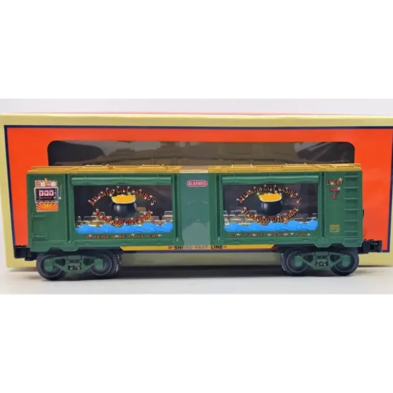 This is a Lionel O Gauge Atlantic City Casino Money Transport Car. This car features die-cast metal sprung trucks, operating knuckle couplers, metal wheels and axles.