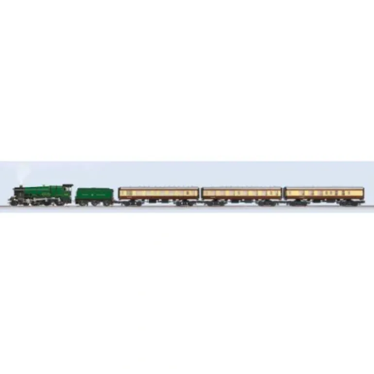 Built in 1929, #4936 Kinlet Hall is one of nearly three hundred Hall-type locomotives built for Great Western Railway between the world wars. During World War II, #4936 was severely damaged when it ran directly into the crater of a bomb after a heavy Luftwaffe raid in 1941 on Plymouth Harbor. In its career, this iron horse ran over a million miles across the Great Northern Railway and British Railway networks. In 1964, Kinlet Hall was withdrawn from service, and twenty years later restoration work was begun on the locomotive. In 2000, Kinlet Hall steamed again for the first time in over 30 years. Recently, this special locomotive has been used to lead numerous excursions that run on the privatized system of Great Western railways, including the Shakespeare Express, which starts its run in Birmingham and works its way through the beautiful rural countryside to Stratfordupon- Avon, the birthplace of William Shakespeare. For 2008, Lionel offers the fine Kinlet Hall steam locomotive dressed in green, along with three chocolate and cream-colored passenger cars.Included is a #4936 Kinlet Hall 4-6-0 locomotive and tender, two passenger coaches and one brake composite car. Features include Transformer controlled forward, neutral, and reverse operation, Two operating headlamps, Operating coupler on rear of tender, Electronic British-sounds whistle, Powerful maintenance-free motor, Two traction tires, Puffing smoke, Cab window glass, Separately applied metal handrails, Die-cast metal locomotive body and Metal frame on tender. The passenger cars feature Interior illumination, Die-cast metal trucks and operating couplers and Soft molded diaphragms between cars.
