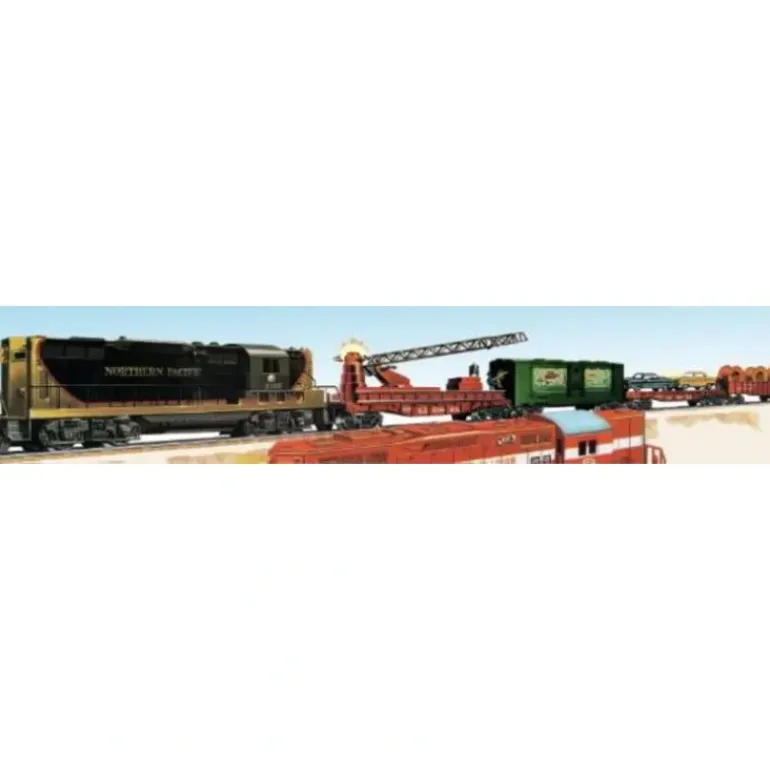 POST WAR CELEBRATION SERIES 50 YEAR ANNIVERSARY SET: Note the power, speed, color, horn and splendid detailing on this LEGACY-equipped GP-9 diesel! Then check the action of the swiveling fireman and rotating light on the fireman-ladder ca