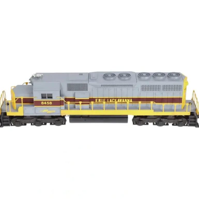 Here is a Lionel 8458 O Gauge Erie Lackawanna SD-40 Diesel Locomotive. This engine was part of the 1451 Erie Lackawanna Limited Set from 1984. It features a Diesel Horn, Working Headlight, transformer controlled forward-neutral-reverse, magne traction, illuminated number boards.