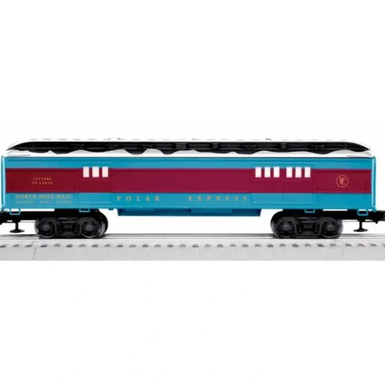 This is a Lionel 6-84601 O The Polar Express Letters to Santa Mail Car. It Features: Operating couplers, Interior illumination and Snow covered roof with footprints.