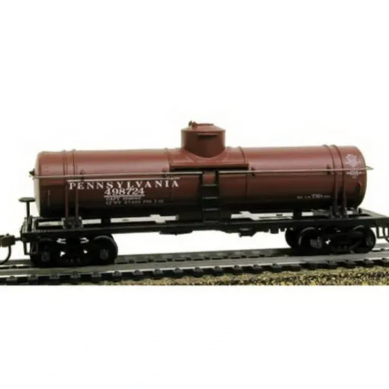 This Pennsylvania 40′ Single Dome Tank Car (#498724) is an HO Scale Model Ready to Run from Model Power Mantua Classics. Suitable for Ages 14 & Older. Features: *Super heavyweight. *RP25 wheels with metal axles. *Knuckle couplers with metal springs. *Complete underside detail. *Finely detailed runway and dome. *Metal tank railing. *Accurately molded plastic body shell prototypically painted brown with white printing: Pennsylvania 498724, data. Includes (1) Tank Car. Scale: HO 1:87. Length: 5-1/8 (131mm). Width: 1-3/8 (34mm). Height: 2 (51mm).