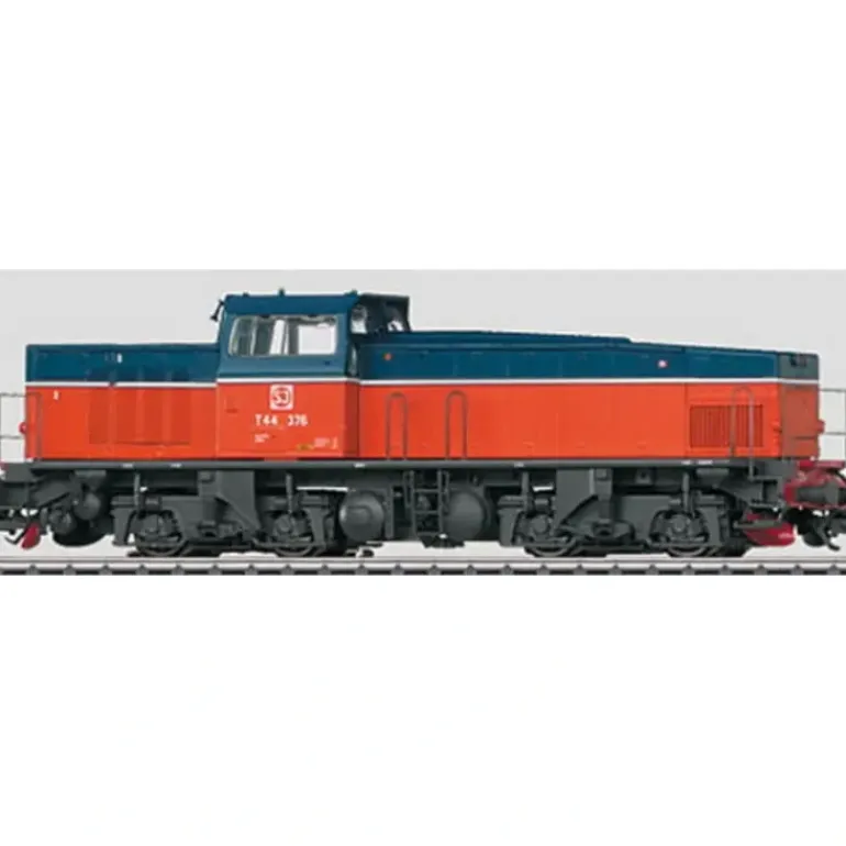 This is a Marklin 37940 Digital Swedish State Railways (SJ) Class T44 Heavy Diesel Locomotive. This locomotive features an mfx digital decoder, Softdrive Sine controlled high-efficiency propulsion, powerful compact design Softdrive Sine motor centrally mounted, 4 axles powered, traction tires, headlights are maintenance-free warm white LEDs, headlights and marker lights will work in conventional operation and can be controlled digitally, red marker lights can be controlled separately, acceleration and braking delay can be controlled digitally with a 6021 Control Unit or with Mrklin Systems, detailed engineers cab, separately applied metal grab irons, and the length over the buffers is: 6-15/16.