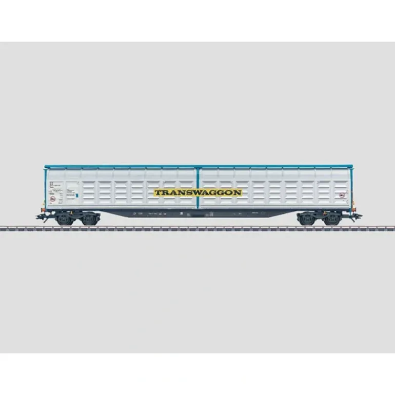 This is a Marklin 48056 Type Habbins 15 High-Capacity Sliding Wall Boxcar. It is a privately owned car lettered for Transwaggon GmbH, Hamburg, Germany, used on the German Railroad, Inc. (DB AG). The car looks as it currently does in real life. Features include fixed sliding walls, adjustable trucks and buffers, type Y25 welded trucks, and the length over the buffers is: 10-1/2.