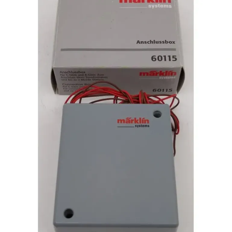 Here is a Marklin 60115 Marklin Connector Box for K Track. This box is for connecting a transformer and up to 2 Mobile Stations. Dimensions 96 x 85 x 40 mm /3-3/4 x 3-3/8 x 1-9/16.