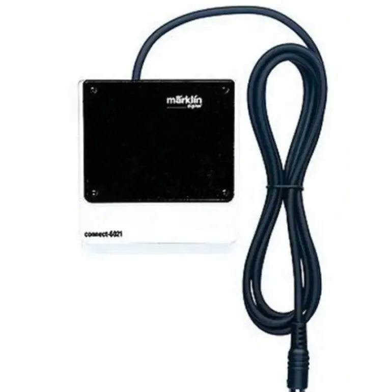 The Connect-6021 is for bidirectional connections between the former Mrklin Digital System and the 60213/60214 Central Station. This allows you to control 80 locomotives (Motorola format as well as mfx) with the 6021 Control Unit, control locomotive auxiliary functions (function, F1 F4), control solenoid accessories with synchronized display of their settings. This connection also allows you to use the 6043 memory as well as the memory functionality of the 60213/60214 Central Station. Connections on the back side: M-Bus cable (for connections to the 60213/60214) Side connections: Multi-pin strip connector for connections to the 6021 world. Dimensions 135 x 120 x 80 mm / 5-5/16 x 4-3/4 x 3-1/8.