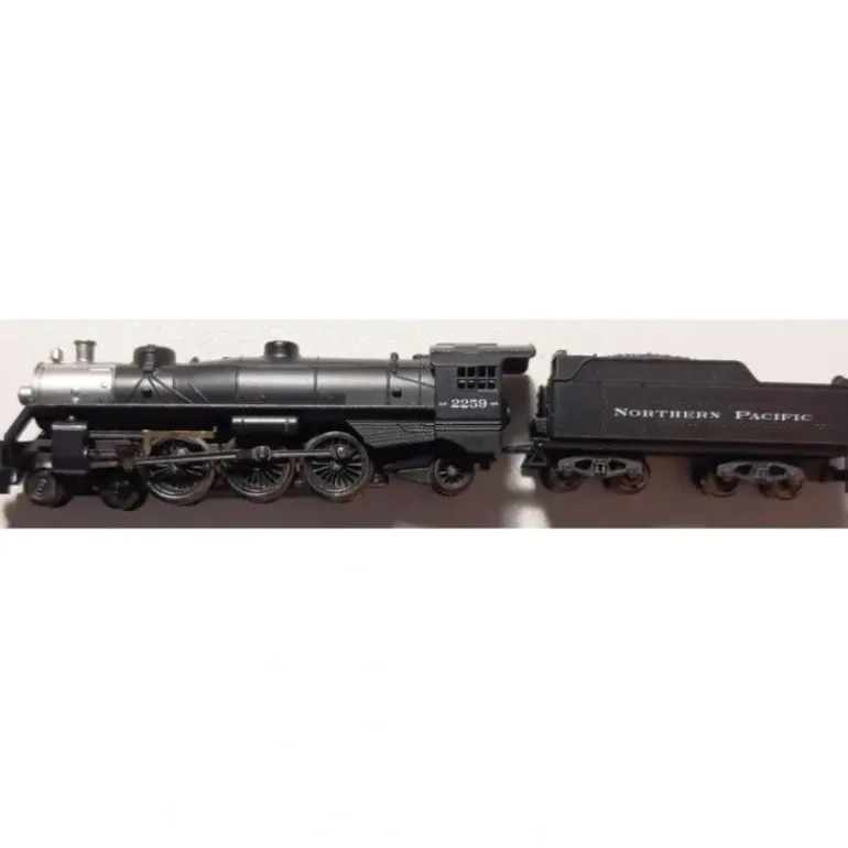 Here is a Marklin 81535 Z Scale Northern Pacific 4-6-2 Steam Locomotive & Tender #2259. This locomotive features a metal shell with a weighted chassis, a powerful motor, directional lighting, metal drive rods, metal wheels and axles, fish-hook couplers, and attractive decoration. The tender features a durable plastic construction with plastic trucks, metal wheels and axles, and fish-hook couplers.