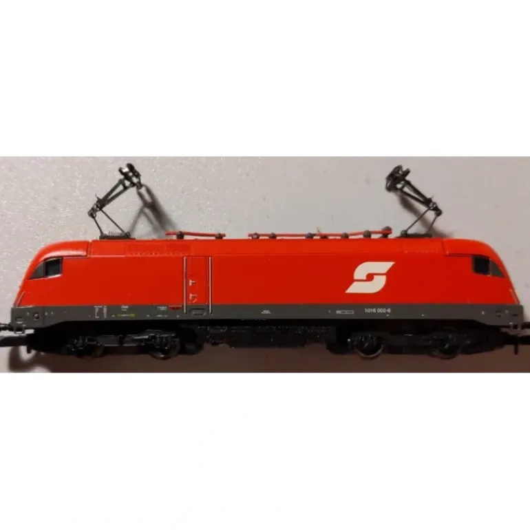 Here is a Marklin 88580 Z Australian Federal Railways Class 1016 Electric Locomotive. Locomotive comes with a 5-pole Mini-Club motor. Both trucks are powered. Headlights are maintenance-free LED’s. Length over buffers 87 mm /3-7/16*. The 87342 express train passenger car set goes well with the 88580 electric locomotive. The “Taurus” class 1016/1116, originally designed for the Austrian Federal Railways (BB), has now become a European success and is currently among the most up-to-date high power locomotives on the continent. This locomotive is called the “Taurus” (“bull” in English) and is a representative of the EuroSprinter family”s second generation. This locomotive is distinguished by an extremely high level of power, with a peak output of 7,000 kilowatts or more than 9,500 hp. There”s a reason for the name “Taurus” for this powerhouse. This locomotive can be used for both the heaviest freight trains and for important passenger service. In addition to the single system version (designated as the class 1016), this locomotive is also used in Europe as a dual system locomotive (class 1116). “Taurus” locomotives are now also in use in Switzerland and Hungary. “Taurus” locomotives are even on the rosters of private carriers in locomotive pools. Even DB Cargo changed the remainder of its order for the class 152 into class 1116 dual system universal locomotives that are now in use on the German Railroad as the class 182.