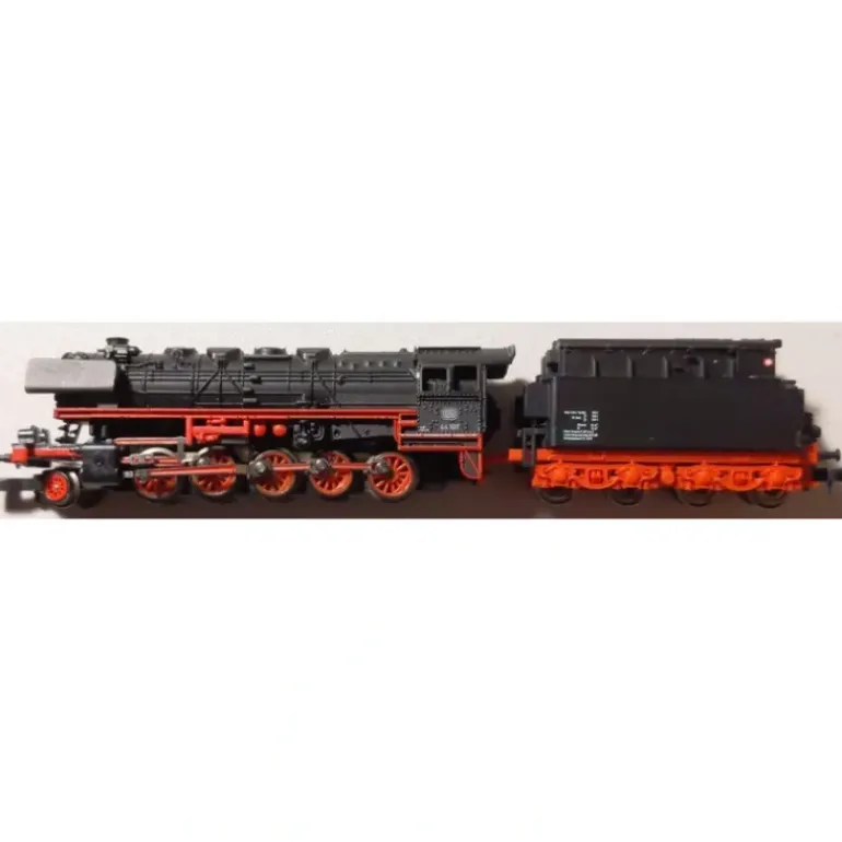 Here is a Marklin Z Scale DB Class 44 2-10-0 Steam Locomotive & Tender. This locomotive features a metal shell with a weighted chassis, a powerful motor, directional lighting, metal drive rods, metal wheels and axles, fish-hook couplers, and attractive decoration. The tender features a durable plastic construction with plastic trucks, metal wheels and axles, and fish-hook couplers.