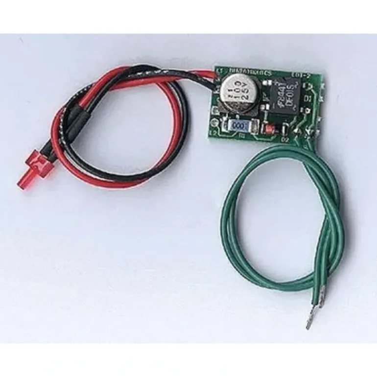 Add realism to the rear end of cars in your layout! Simply drill a 5/64 hole in the rear end of your car and insert the 1.5mm L.E.D. Hide the printed circuit board in the car, and run the flasher directly off the tracks. This will operate efficiently on just about any power source you may have. Run them off your tracks or any external power from 9-14 Volts AC or DC.