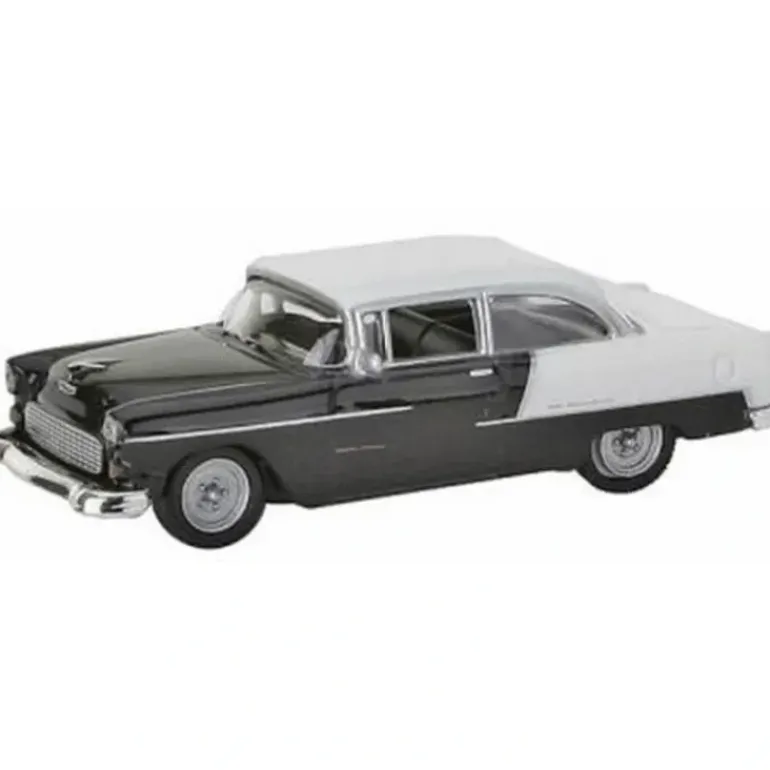 This is the 1/87 Scale Black and White 1955 Chevy Bel Air from the Minis Series by Model Power. Features: Highly collectible, Painted in black and white with black interior, Includes display case. Includes One die-cast metal car. Scale: 1/87. Length: 2-1/4 (57.15mm). Width: 3/4 (19.05mm).