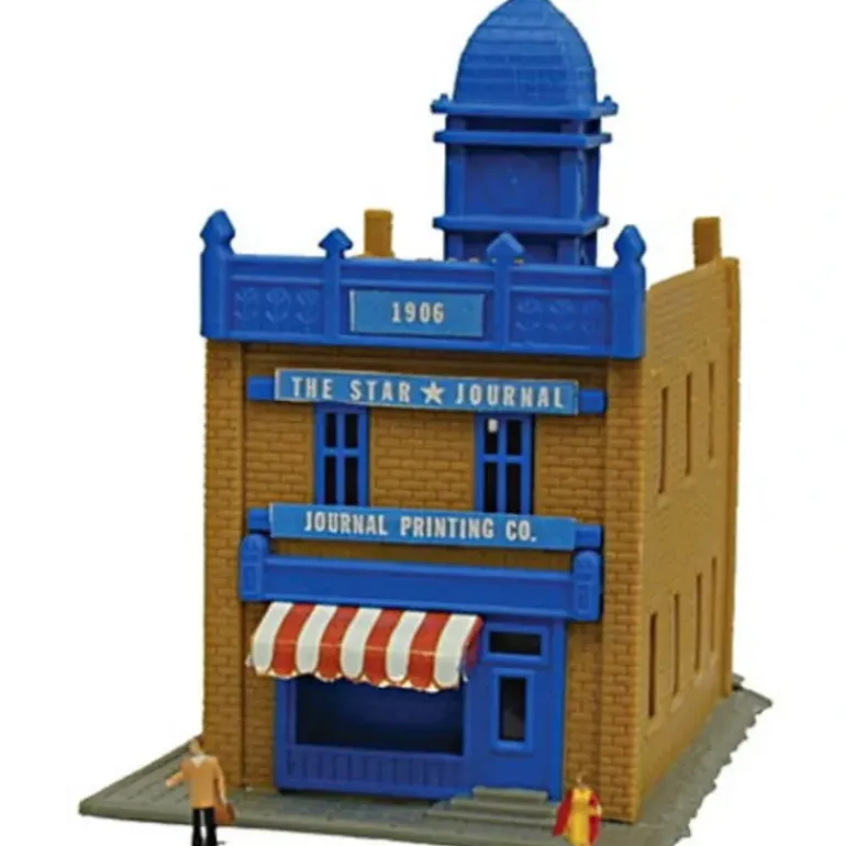 This is a Model Power 2598 Star Journal Building with Two Figures. Star Journal Built-Up Building — w/2 Figures – N-Scale. Features: 3-5/8 x 2-1/2 9 x 6.3cm, These easy-to-build kits feature colored plastic parts, preprinted signs and complete instructions. Deluxe versions are assembled and lighted buildings with two handpainted figures, unless noted.