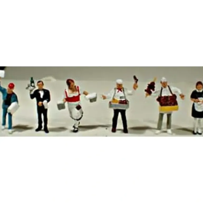 These Are A Variety of Service Staff Figures Ready for Use On HO Scale Layout from Model Power. Features: Hand painted HO scale figures, These figures represent a variety of service-type staff personel, All are molded in a standing, action pose, If a base is desired to aid in standing, cut a flat part of the blister packaging and glue the figures to the base. Includes (6) Figures. Scale: HO 1:87.