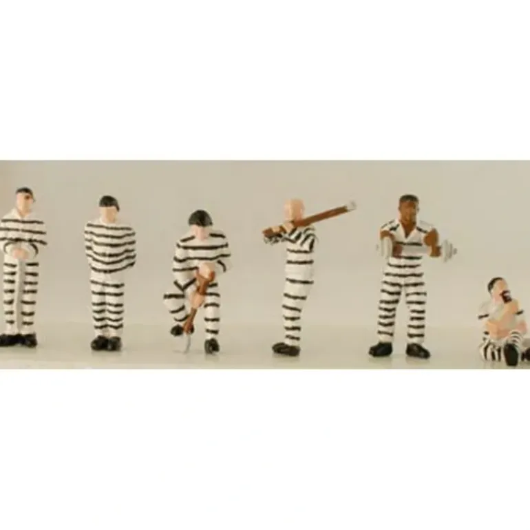 This is the 6 Black/White Prisoner Figures to Add Life to Your HO Scale Model Railroad Layout from Model Power. Features: Each piece molded in HO scale Hand painted figurines All are dressed in white with black striped uniforms These are male prisoners Molded in realistic standing and sitting poses Create realistic scenery on your railraod layout. Scale: HO 1:87. Agv. Height: 3/4 (19.05mm).