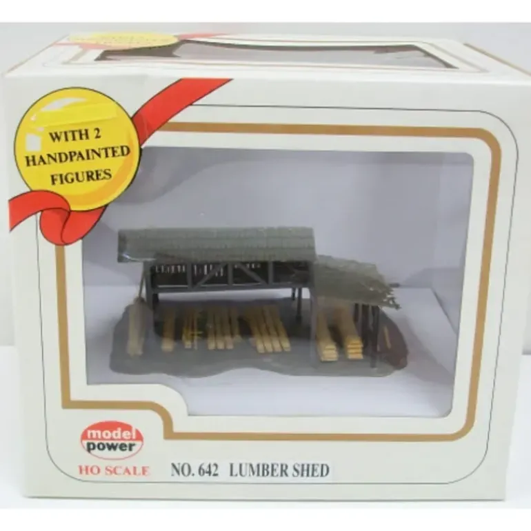 This is a Model Power 642 HO Scale Lumber Shed Building Kit. This kit includes durable plastic parts, detailed instructions, and attractive decals.