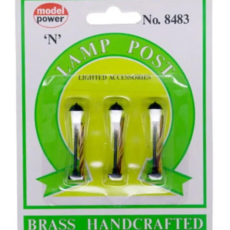 This is a Set of N Scale Frosted Boulevard Lamps from Model Power. Frosted Lamp Posts are great for your railroad layouts or dioramas. They may also be used by hobby crafters. Features: Handcrafted in brass, Black post with white boulevard street lamp, Wires are already attached. Includes: Three Boulevard Lamp Posts (Lighted).