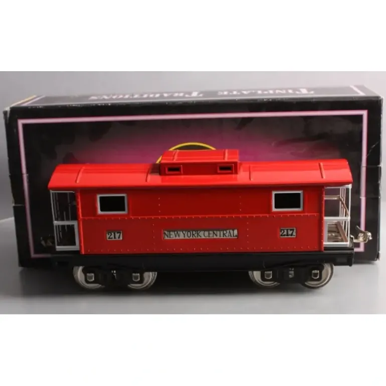 Here is a MTH 10-1054 217 Standard Gauge New York Central Red Caboose W/Nickel Trim. There were only 30 made. This car is a reproduction of the Lionel 217 from the 1920s and 30s. It features all metal construction, a baked enamel finish, and latch couplers. Item has interior & directional lighting.