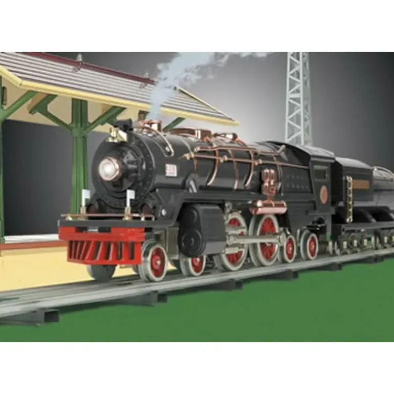 Here is a MTH 10-1202-0 Here is a Black w/Brass 400E Tinplate Steam Engine (Traditional). The 400E is the most popular and most sought after of the original pre-war tinplate engines. The largest of the Standard Gauge tinplate steamers, this engine was introduced in 1931 and was an immediate sensation. The 400E is best known for pulling the Blue Comet passenger set, but it is also one of only two steamers to pull the large 200-series freight cars, which gives you extra flexibility on your railroad.Features Include Baked Enamel Finish Colorful Paint Scheme Metal Wheels and Axles Operating Metal Latch Couplers Metal Handrails and Decorative Bell Nickel Trim Die-Cast Metal Chassis Stamped Steel Tender Stamped Steel Boiler